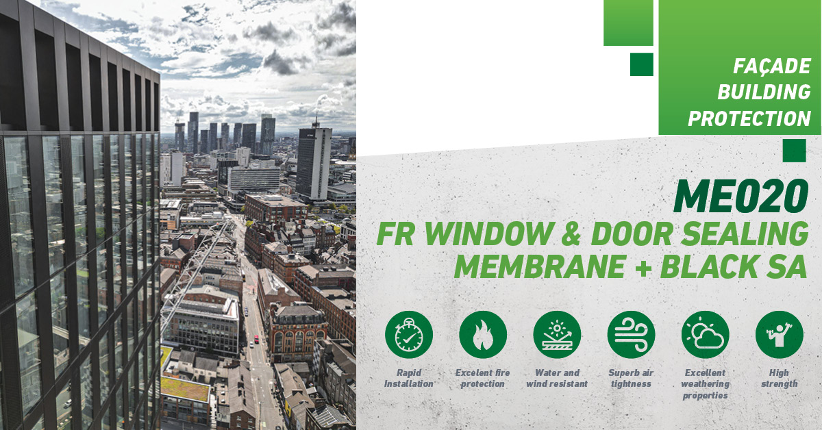 “It provides excellent water and air tightness as well as a Class B fire performance over a wide range of substrate types. The fully self-adhesive backing means it’s quicker and easier to install when compared to other window sealing membranes currently available in the market.”