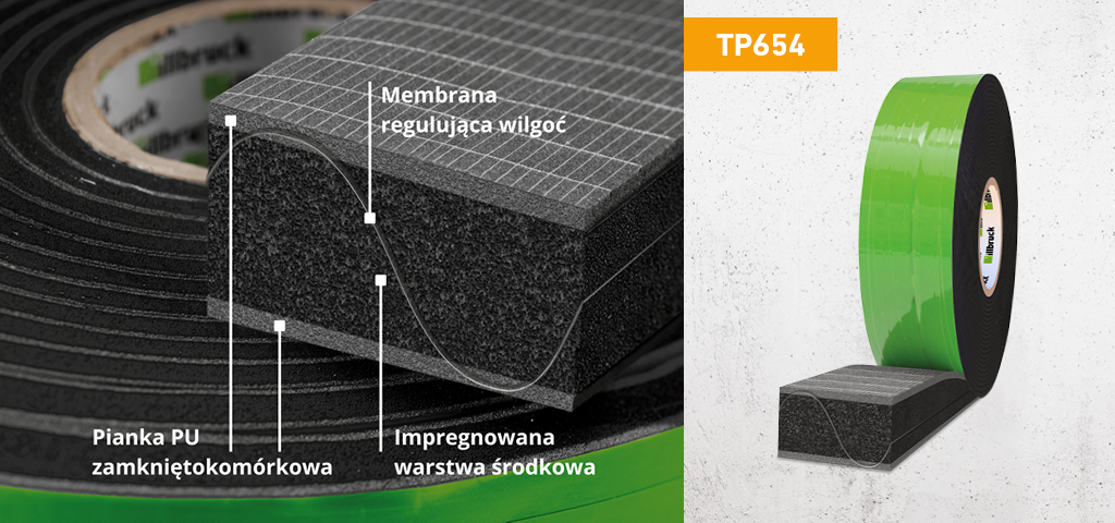 Taśma Trio TP654 z technologią wielowarstwową zachwyca unikalną geometrią i innowacyjnym połączeniem materiałów. Potwierdza to również certyfikat MF1. Wysokiej jakości, wielowarstwowa konstrukcja tej taśmy premium, składająca się z impregnowanej pianki, membrany o zmiennej wilgotności w środku i szarej pianki o zamkniętych komórkach na zewnątrz łączy w sobie doskonałą wydajność z bardzo dobrymi właściwościami montażowymi. Zoptymalizowane zewnętrzne strony taśmy zapewniają hermetyczną powierzchnię styku nawet przy nierównych krawędziach i profilowanych ościeżnicach, zapewniając szczelność powietrzną. Efekt to niezawodne, wysokiej jakości i bezpieczne połączenie okienne.